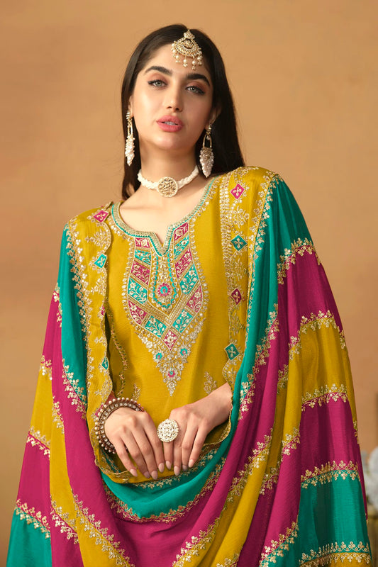 Mustard Colour Straight Suit Chinon Silk Semi Stitched VSSM1050498