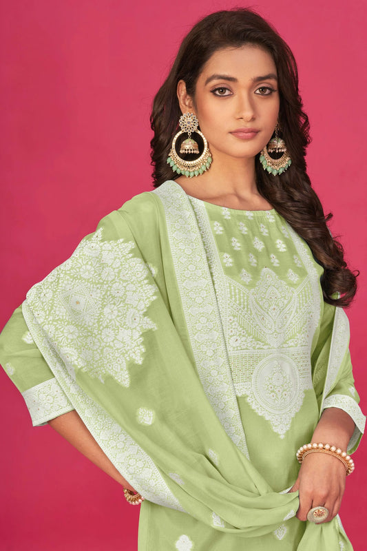 Light Green Colour Unstitched Modal Chanderi Fabric Straight Suit VSUS1161056