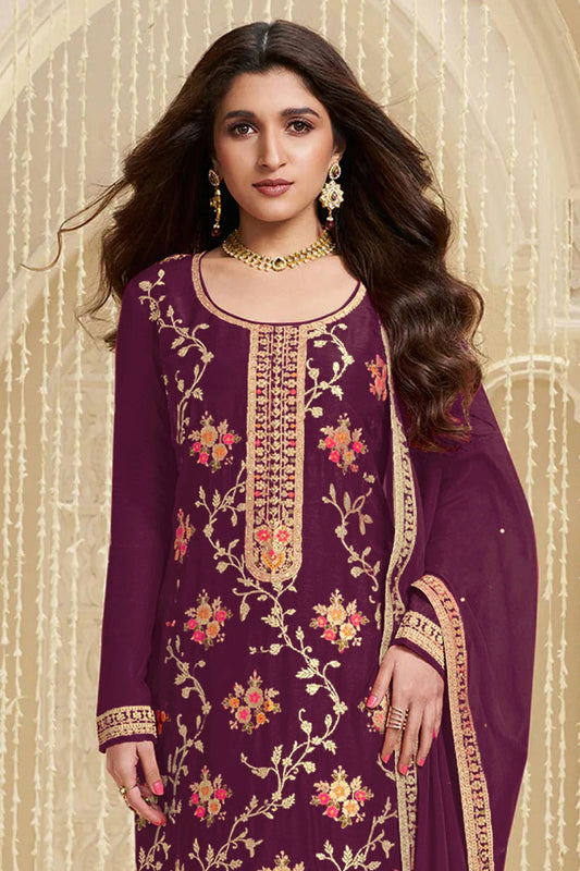 Purple Colour Semi Stitched Chinon Straight Suit VSSM1112777