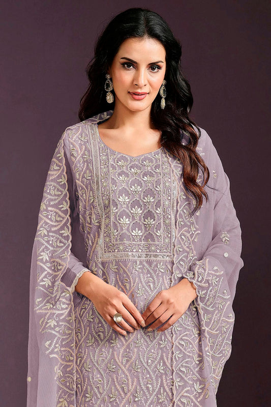 Lavender Colour Straight Suit Soft Organza Semi Stitched VSSM1050500