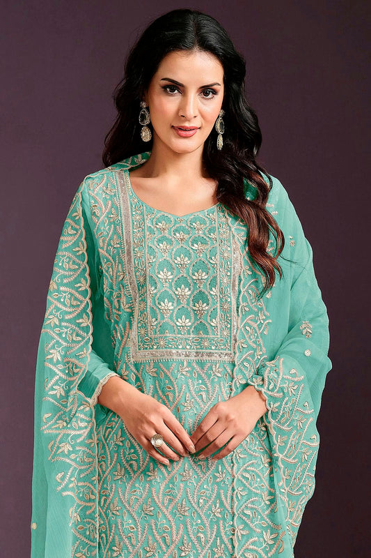 Sea Green Colour Semi Stitched Chinon Straight Suit VSSM1112778