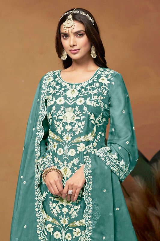 Teal Colour Straight Suit Soft Organza Semi Stitched VSSM1050501
