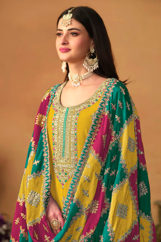 Yellow Colour Straight Suit Chinon Silk Semi Stitched VSSM1050495