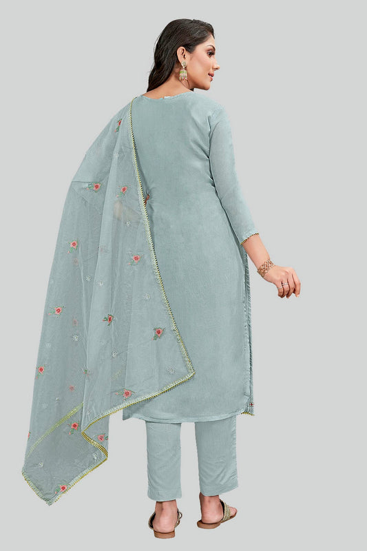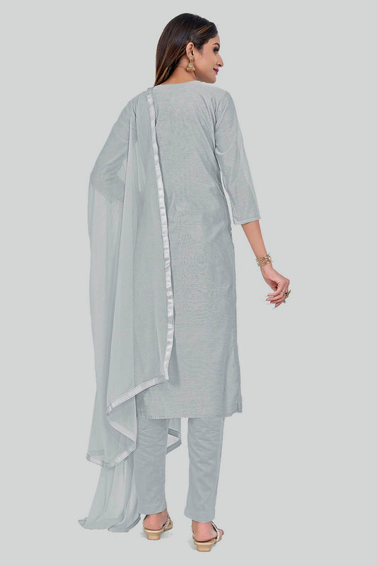 Grey Colour Chanderi Silk Pant Style Suit VSSM1110651