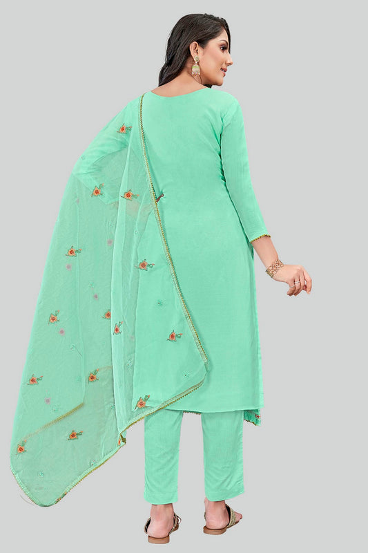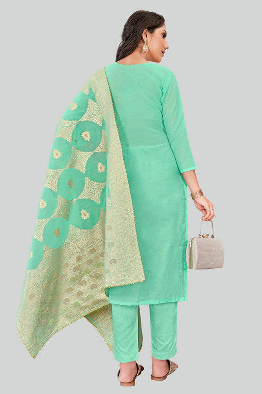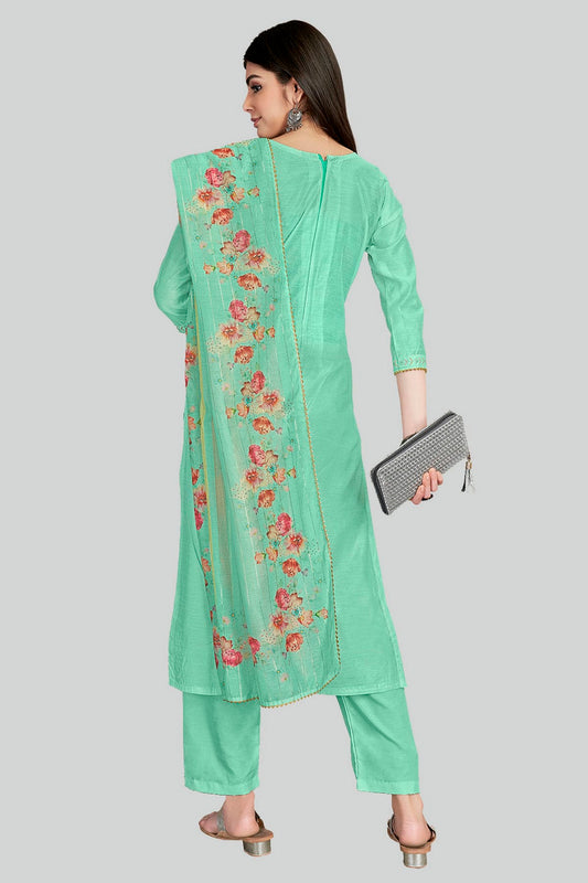 Sea Green Colour Chanderi Silk Pant Style Suit VSSM1110622