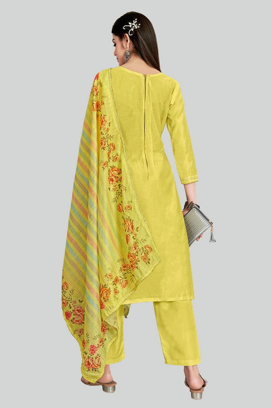 Yellow Colour Chanderi Silk Pant Style Suit VSSM1110634