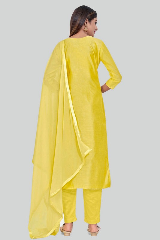 Yellow Colour Chanderi Silk Pant Style Suit VSSM1110637