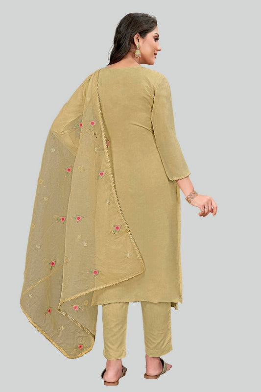 Beige Colour Chanderi Silk Pant Style Suit VSSM1110631