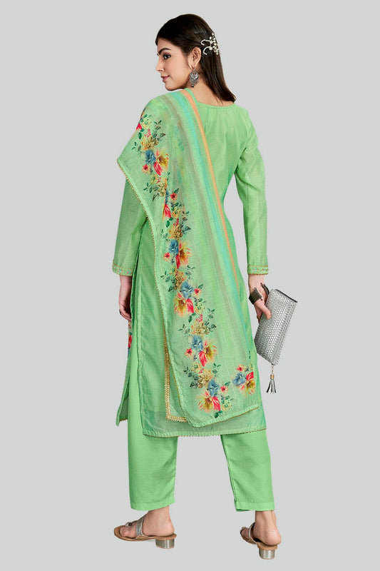 Light Green Colour Chanderi Silk Pant Style Suit VSSM1110636