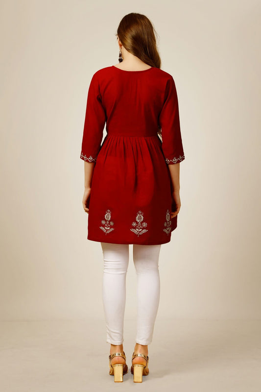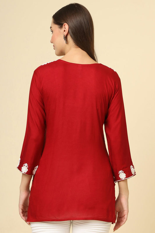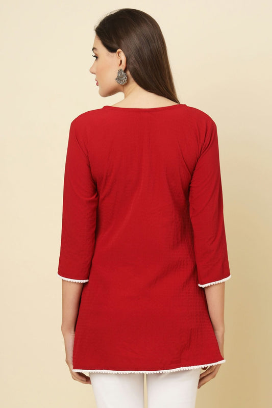 Red Colour Cotton Crush Solid Work Readymade Top VSTP1110732