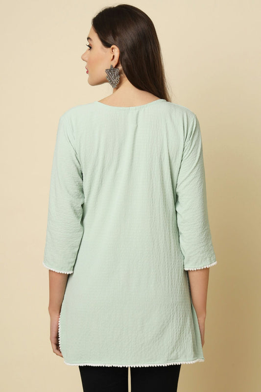 Sea Green Colour Cotton Crush Solid Work Readymade Top VSTP1110731