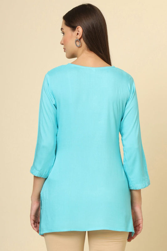 Sky Blue Colour Rayon Readymade Top VSTP1110830