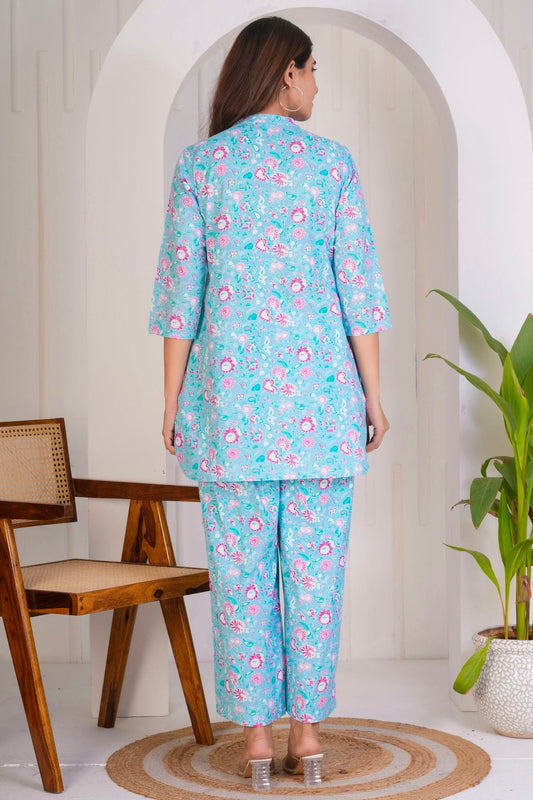 Sky Blue Colour Stitched Cotton Co Ord Set VSTP1112403