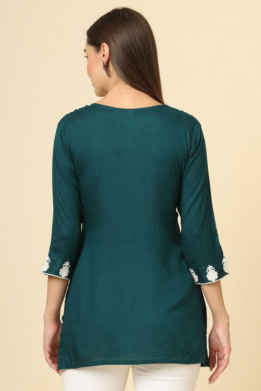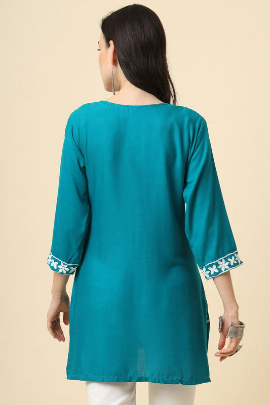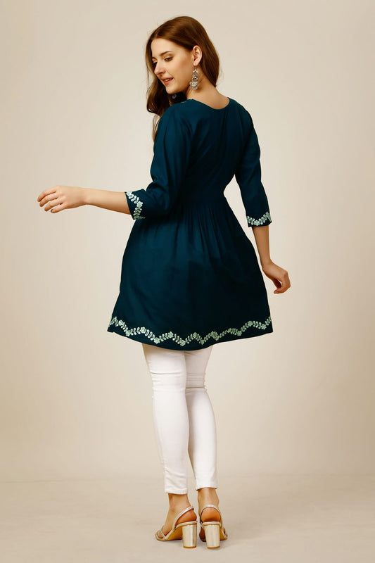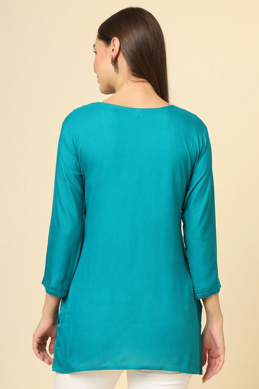 Teal Colour Rayon Thread Work,Sequins Work,Embroidery Work Readymade Top VSTP1110802