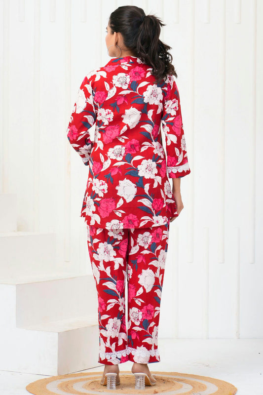 Red Colour Stitched Rayon Co Ord Set VSTP1112411