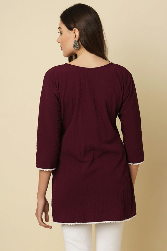 Wine Colour Cotton Crush Solid Work Readymade Top VSTP1110729