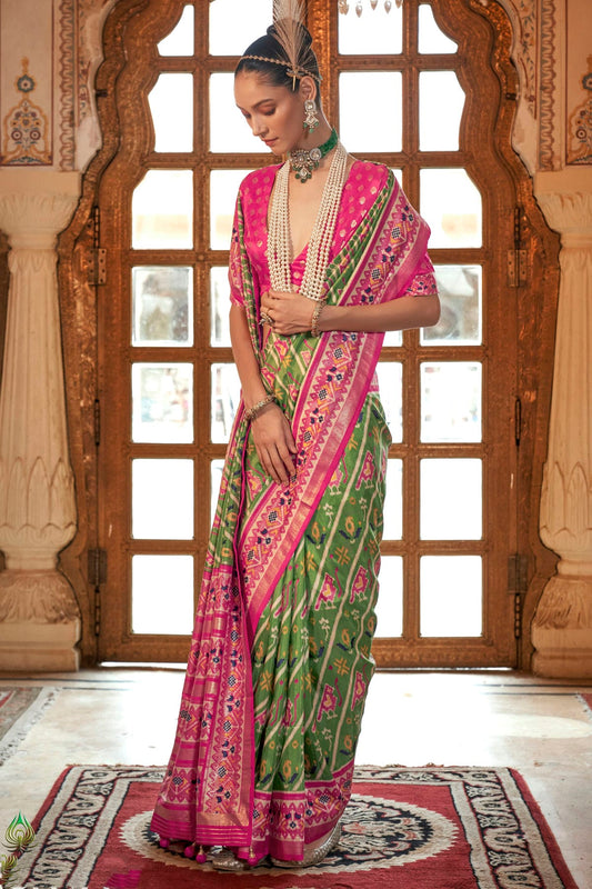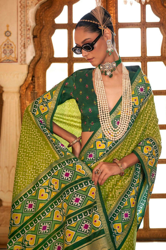 Mehendi Green Colour Silk Patola Print Saree VSSD1290047