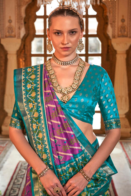 Teal Colour Silk Patola Print Saree VSSD1290048