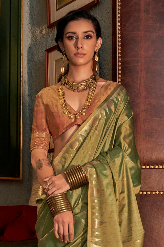 Light Green Colour Tussar Silk Woven Work Saree VSSD1290003
