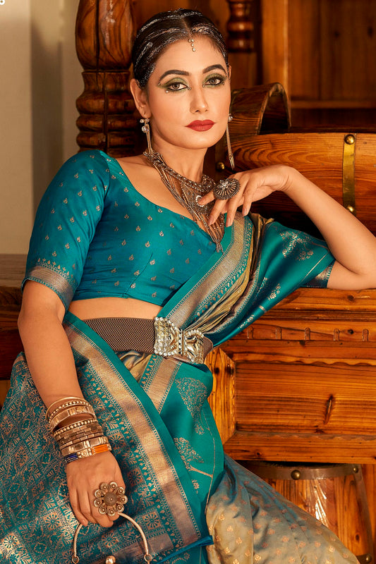 Grey Colour Soft Banarasi Silk Woven Work Saree VSSD1290090