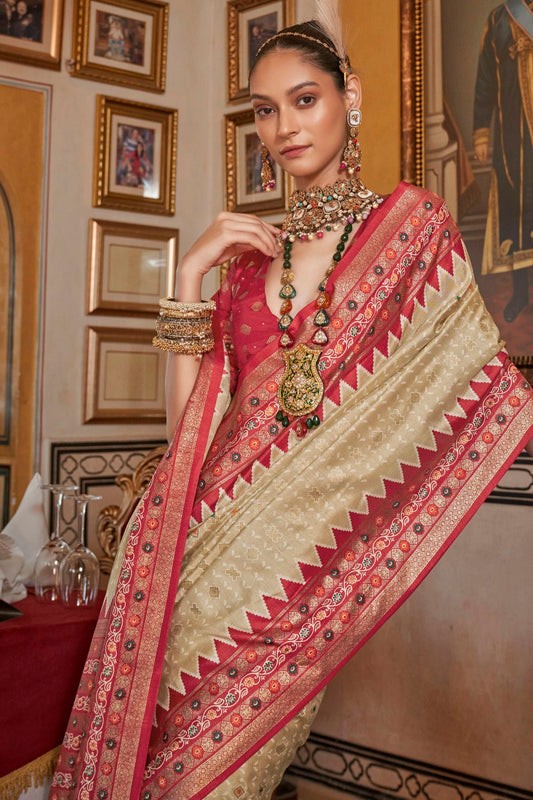 Cream Colour Sigma Silk Patola Print Saree VSSD1290059
