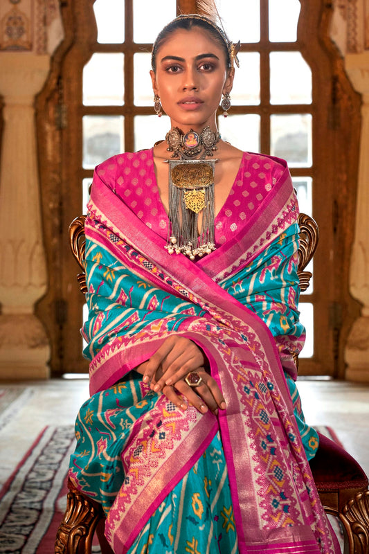 Sky Blue Colour Silk Patola Print Saree VSSD1290053