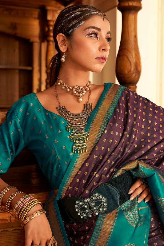 Violet Colour Soft Banarasi Silk Woven Work Saree VSSD1290094