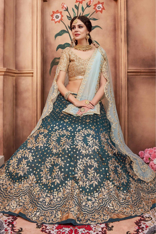 Teal and Blue Colour Georgette Sequins Work Lehenga Choli VSLC1080412
