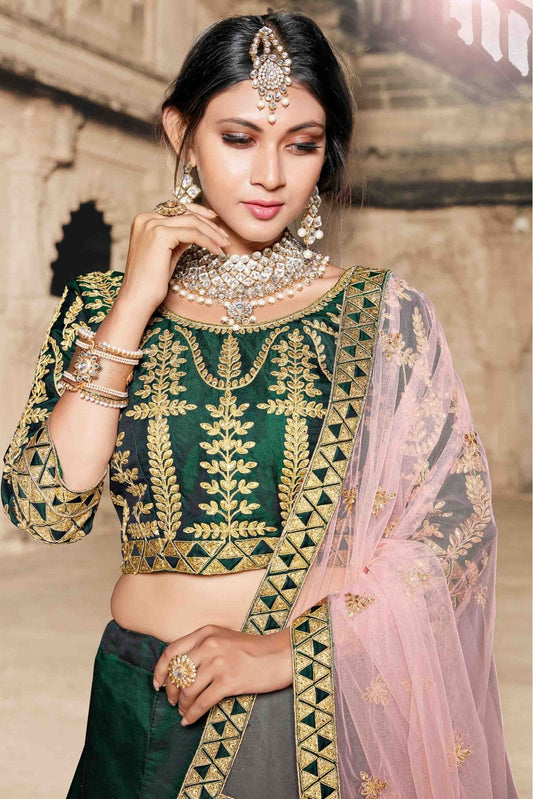 Green Colour Satin Embroidery Lehenga Choli VSLC1080458