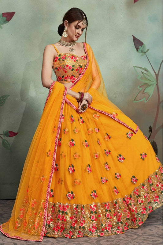 Mustard Colour Soft Net Sequins Work Lehenga Choli VSLC1080418