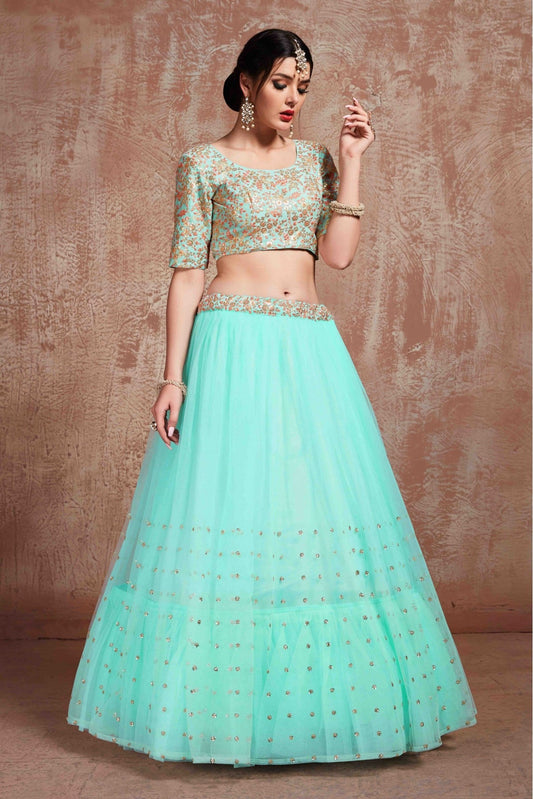 Green Colour Soft Net Sequins Work Lehenga Choli VSLC1080425