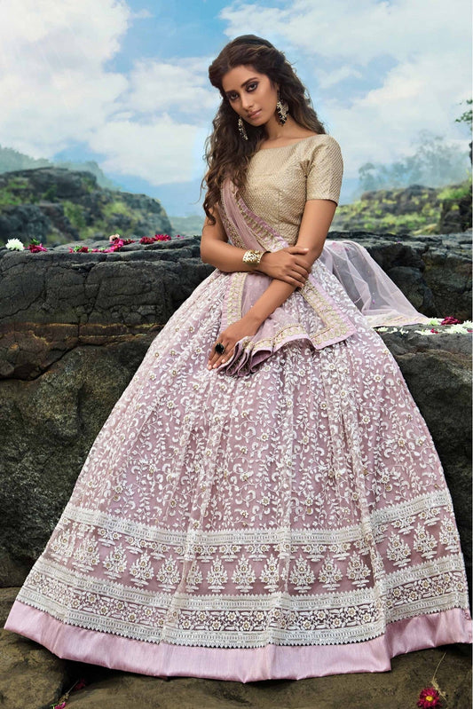 Violet Colour Soft Net Thread Work Lehenga Choli VSLC1080428