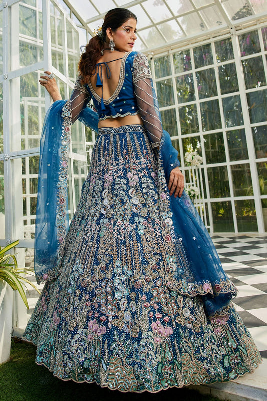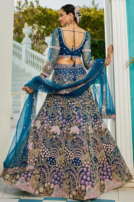 Blue Colour Semi Stitched Net Lehenga Choli VSLC1112544