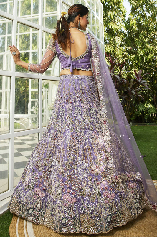 Lavender Colour Tissue Embroidery Lehenga Choli VSLC1111388