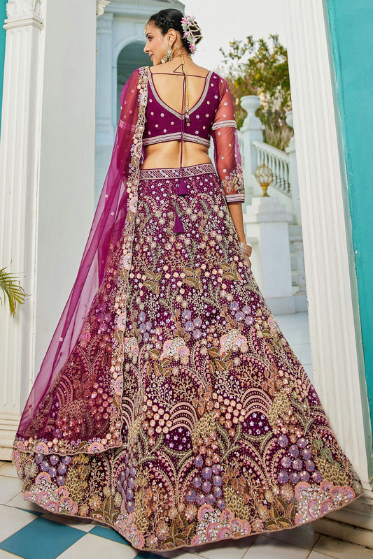 Mauve Colour Semi Stitched Net Lehenga Choli VSLC1112548
