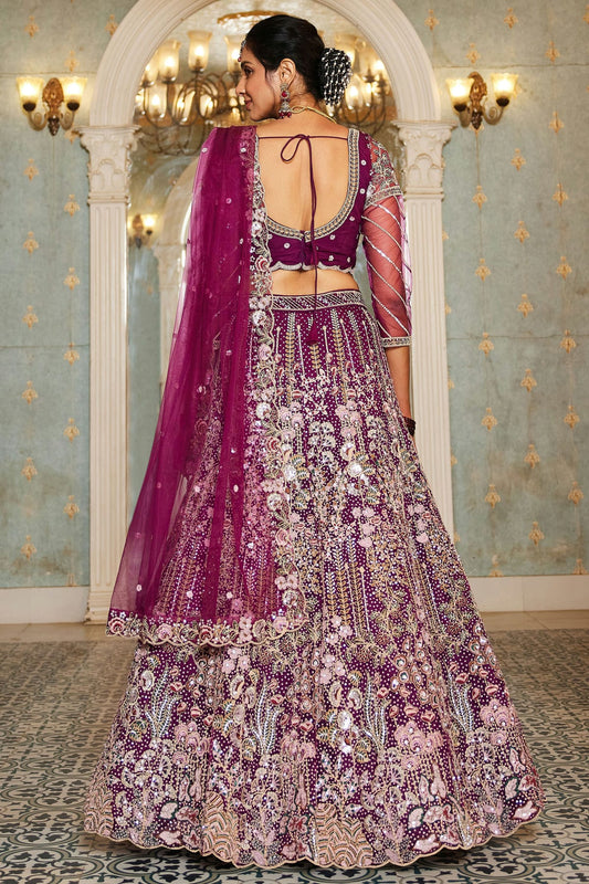 Purple Colour Cosmos Jacquard Embroidery Lehenga Choli VSLC1111392