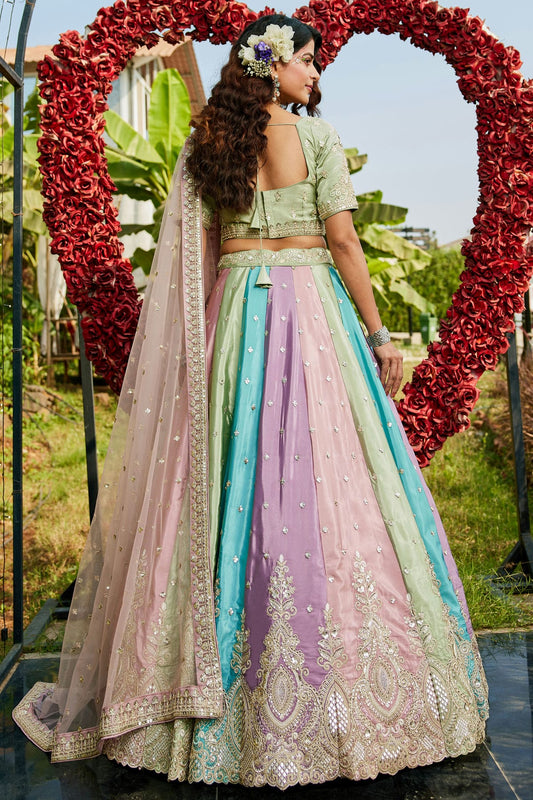 Sea Green Colour Tissue Embroidery Lehenga Choli VSLC1111389