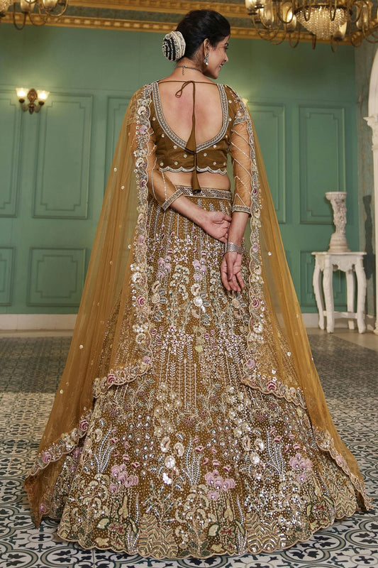 Mustard Colour Semi Stitched Net Lehenga Choli VSLC1112550