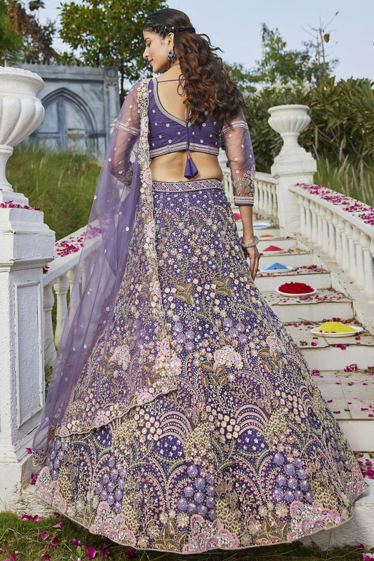 Purple Colour Semi Stitched Net Lehenga Choli VSLC1112546