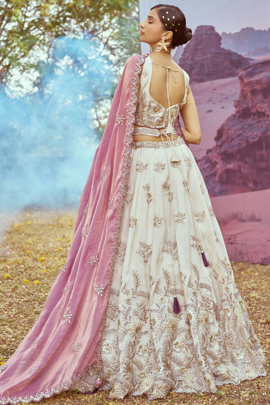 Cream Colour Tissue Embroidery Lehenga Choli VSLC1111387