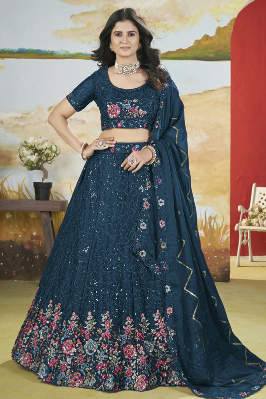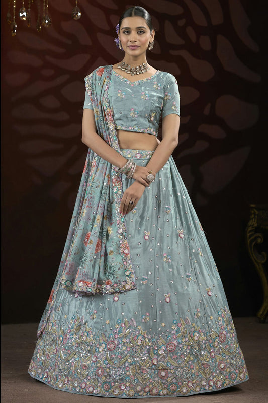 Sky Blue Colour Organza Embroidery Lehenga Choli VSLC1111397