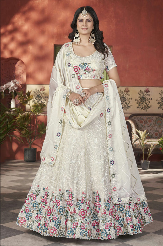 Off White Colour Semi Stitched Chinon Lehenga Choli VSLC1112525