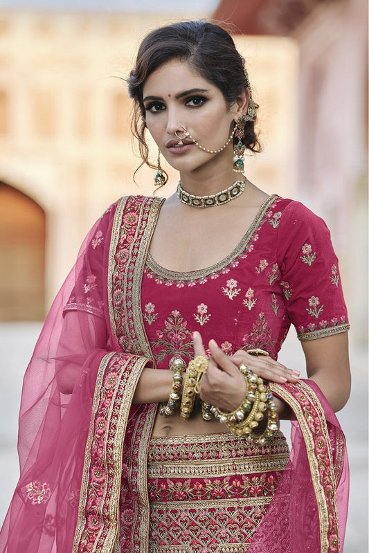 Pink Colour Satin Resham Work Lehenga Choli VSLC1080127