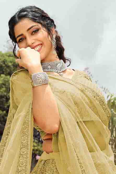 Cream Colour Organza Resham Work Lehenga Choli VSLC1080118