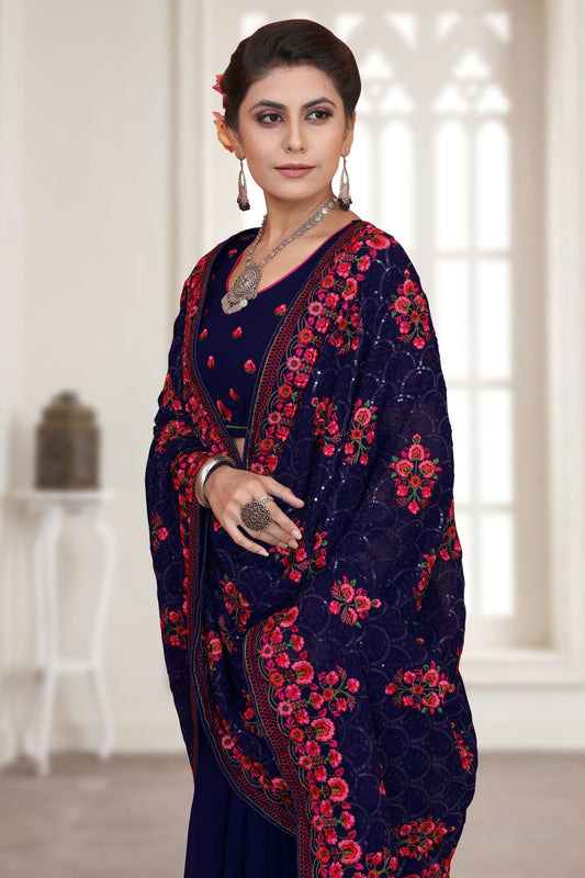 Navy Blue Colour Georgette Saree VSSD1090777