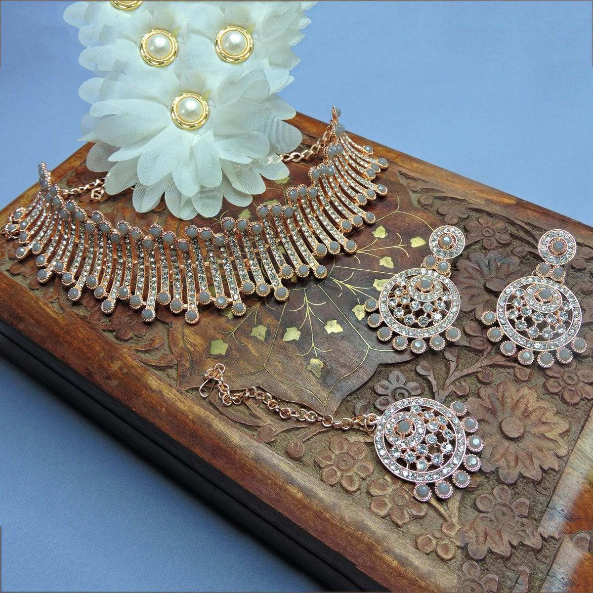 Alloy Choker Necklace Set In Grey Colour VSNS1250037