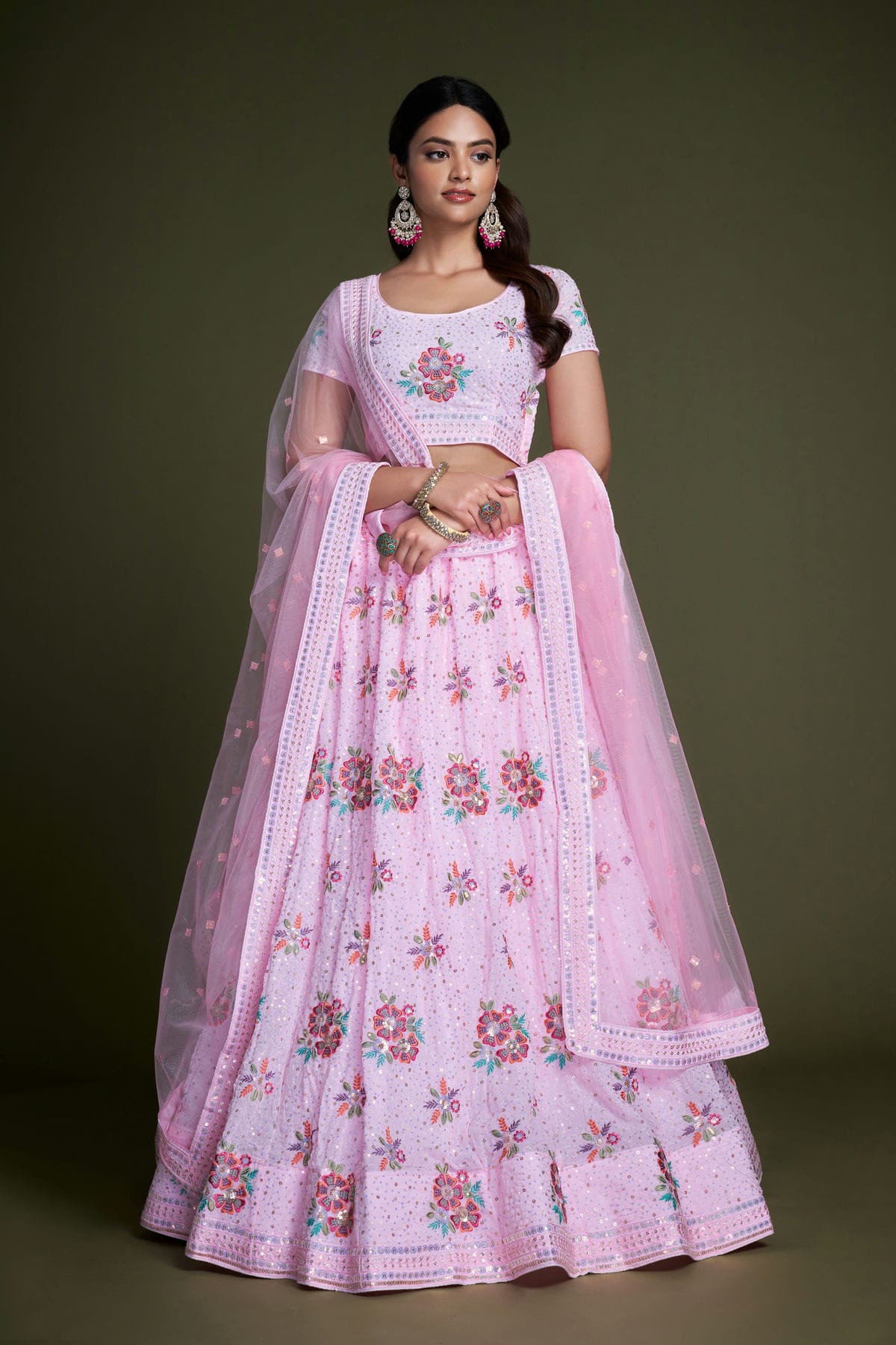 Baby Pink Colour Embroidery Georgette Lehenga Choli VSLD1080850