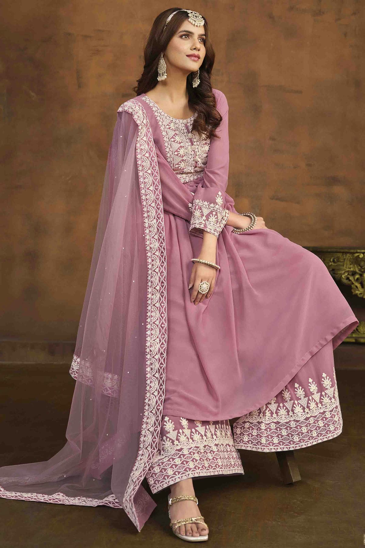 This Faux Georgette Palazzo Pant Suit In Baby Pink Colour is a great way to show off your style and comfort. You can feel relaxed by wearing it at any function.