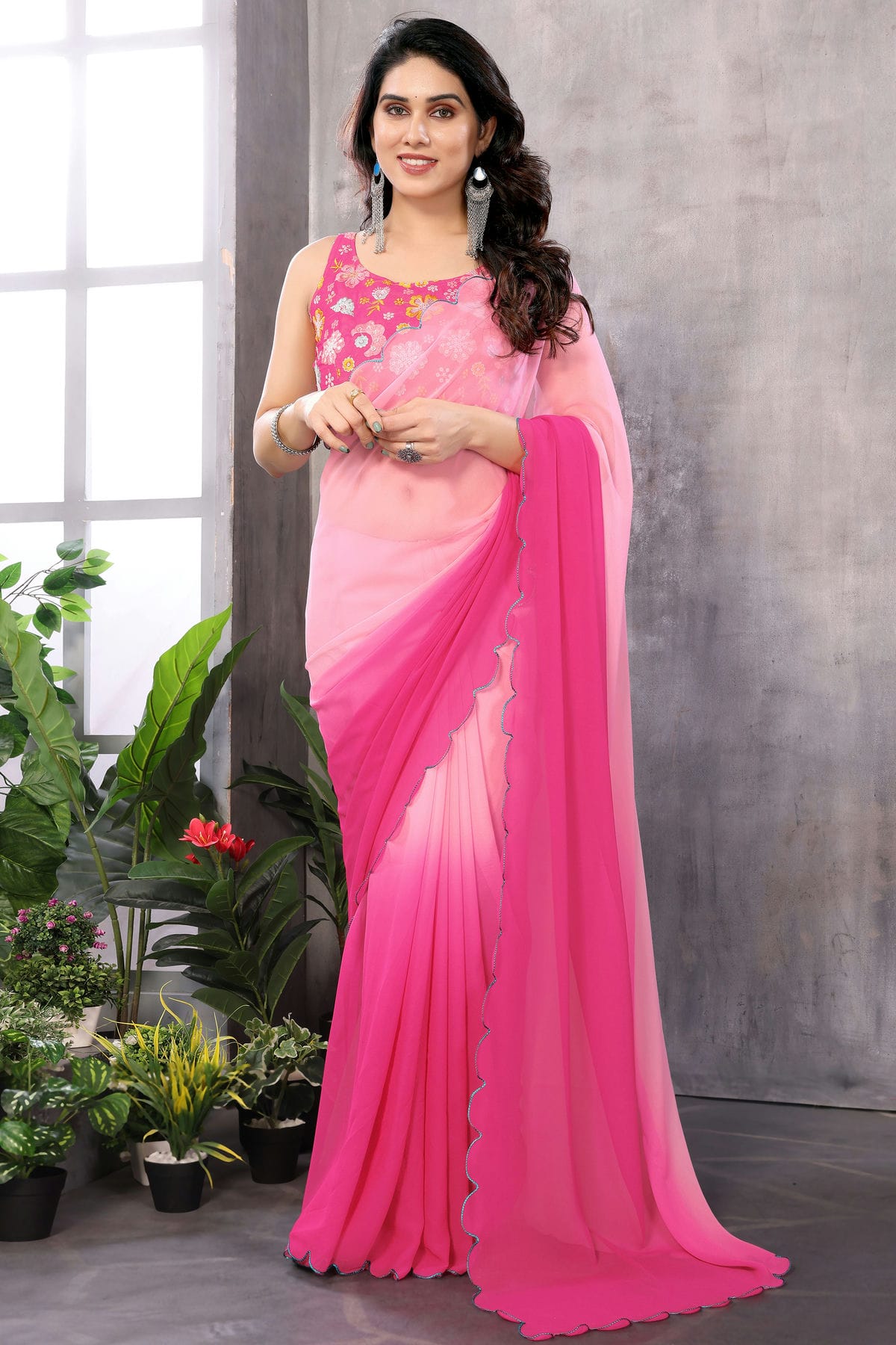 This Georgette Saree In Baby Pink Colour is a great way to show off your style and comfort. You can feel relaxed by wearing it at any function.