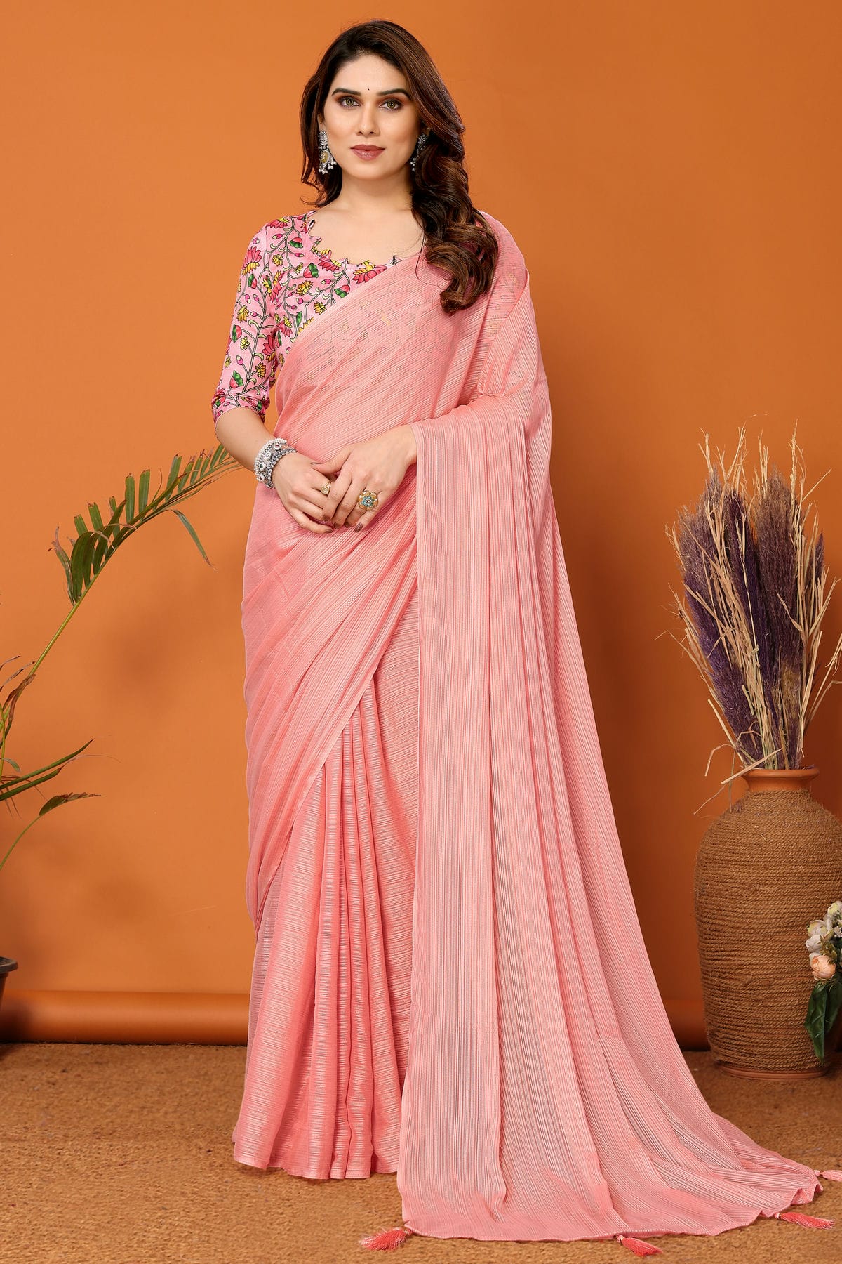 This Polyester Saree In Baby Pink Colour is a great way to show off your style and comfort. You can feel relaxed by wearing it at any function.
